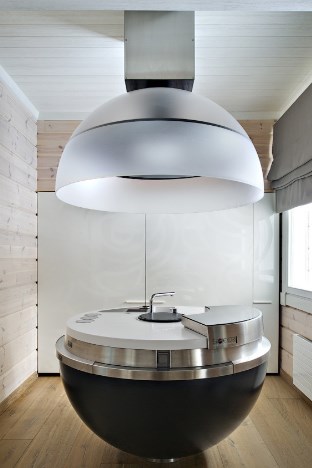 Хозяев этого дома в Подмосковье не особо пленила эстетика избы, так что они спрятали (где смогли) оцилиндрованное бревно за гладкими панелями с деревянным рисунком. Хитрость в том, что это не просто панели, а полноценные шкафы на пушап-системе (нажал-открыл): там спрятаны не только провода и трубы, но и масса домашних вещей.