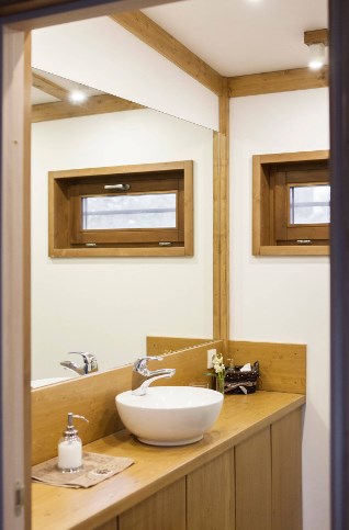 Під раковиною у ванній кімнаті встановили накопичувальний водонагрівач, другий у кухні. «Вода надходить дуже просто: ми не стали робити свердловину, а встановили в колодязь занурювальний насос із зворотним клапаном. Розширювальний бачок та реле тиску заховані у шафці під стільницею у ванній кімнаті, траса до колодязя проходить під землею, вона утеплена», — уточнює Дмитро.
