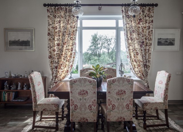 Ще один лайфхак з того ж проєкту з яблуневим садом: замість штор у кількох кімнатах, зокрема й на фото, використані іванівські скатертини з льону.