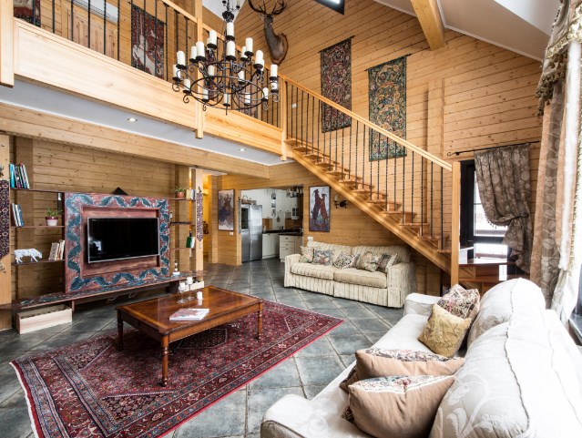 Килими будуть доречні в будь-якому дерев'яному будинку, оскільки суто ідеологічно близькі дереву за «тепловіддачею». Крім того, з їхньою допомогою можна виділити різні зони внутрішнього простору. Особливо цей метод добре працює в білосніжному інтер'єрі. До речі, білий контрабас - це бар. Знання, яким неможливо не поділитися.